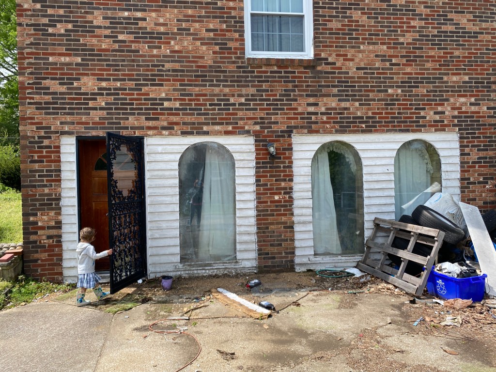 The back porch had been built into a fully enclosed sun room. Despite this room being completely worn down and the windows quite “rattly”, the glass pieces were surprisingly all intact. How had it withstood this many years of Tennessee storms? I imagine this windowed space was once pretty nice but it’s time had definitely come to an end in my opinion. Ronny tried briefly to talk me into keeping the hot tub and seeing if we could fix it…um, gag. Firm no.