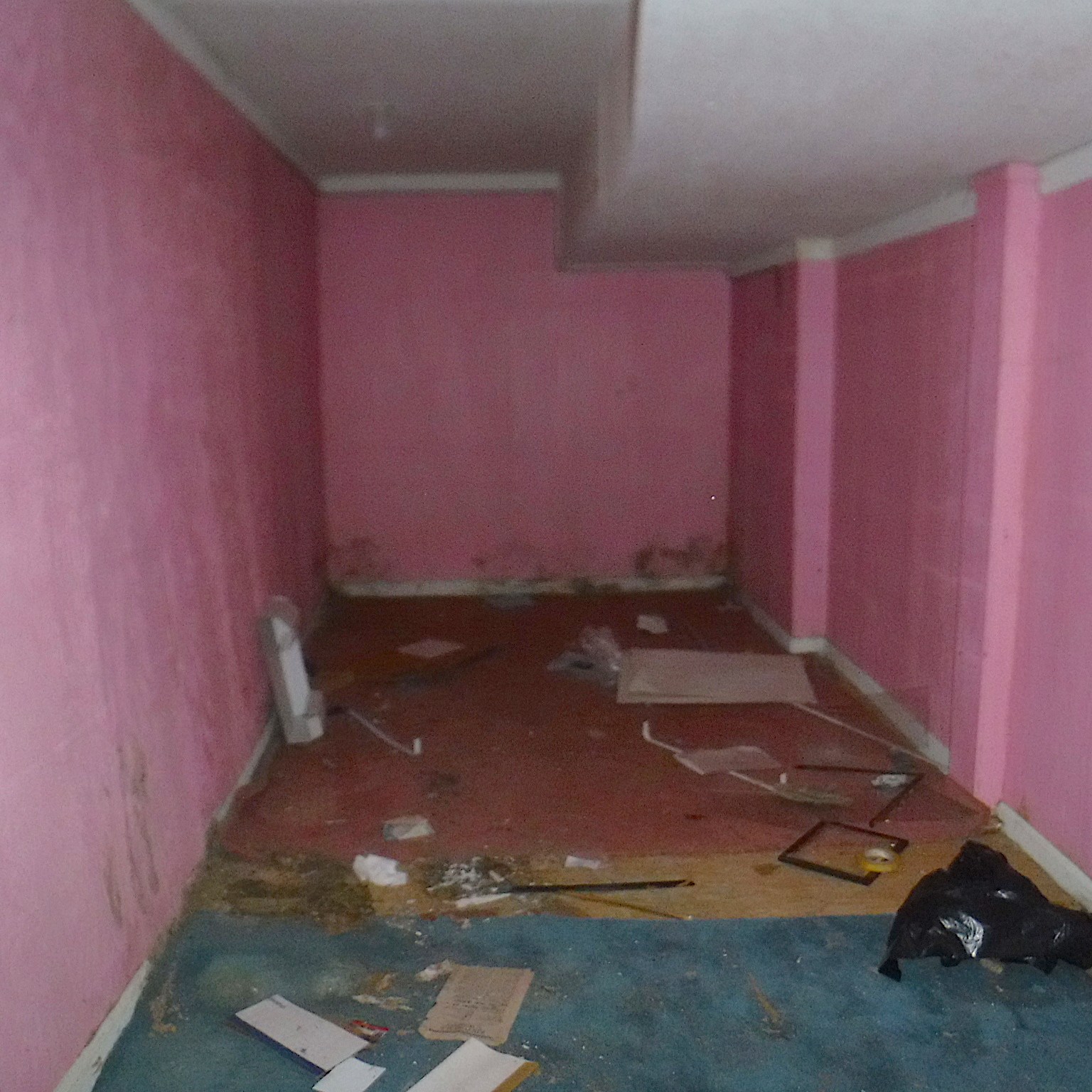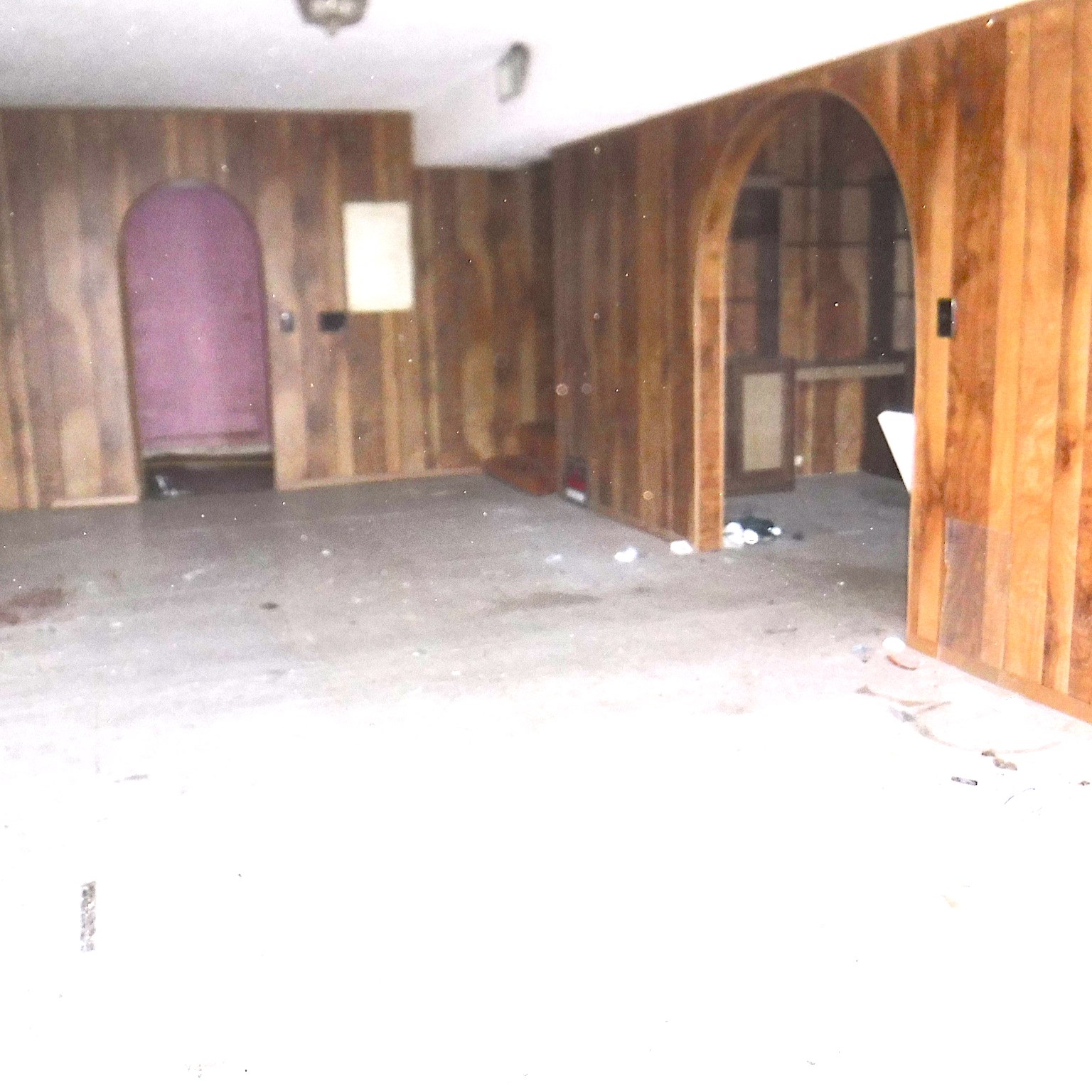 The garage is at the lower side of the house and includes the crawlspace and a semi- basement area. It has a staircase going into the house. It had been built out into several dungeon-ish rooms which were barely walkable. A floor about 4” high had been built up to cover the bottom of the entire space and several walls had been constructed to section off rooms which seemed to at one time be used for an office, extra rooms, and…a good amount of hoarding. Awfully placed AC ducting ran through the middle, running directly overhead at the bottom of the stairs. Any person taller than Frodo would have to duck to not hit their head on it.
