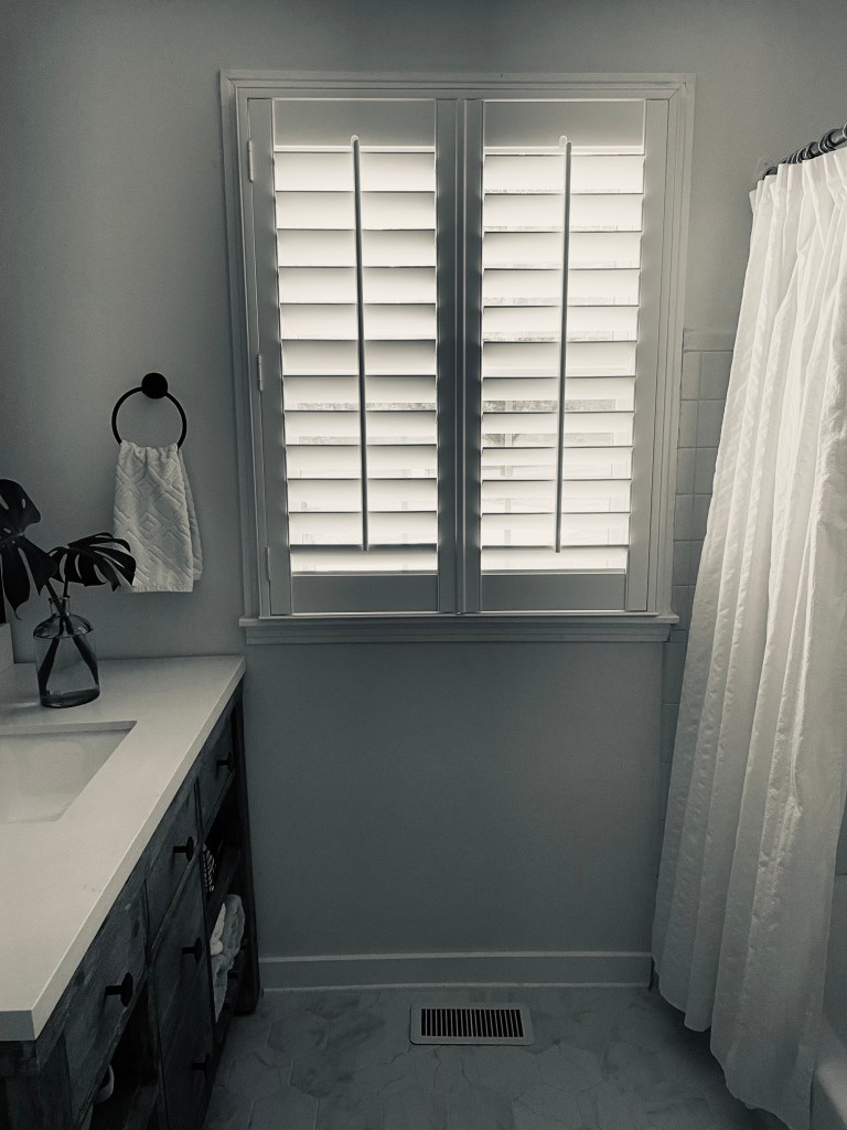 I have always loved plantation shutters far more than curtains or blinds (Can I still use that word? Have they been cancelled yet?) While I’d gladly put them in every window in the house, we started with just the bathrooms and our master.