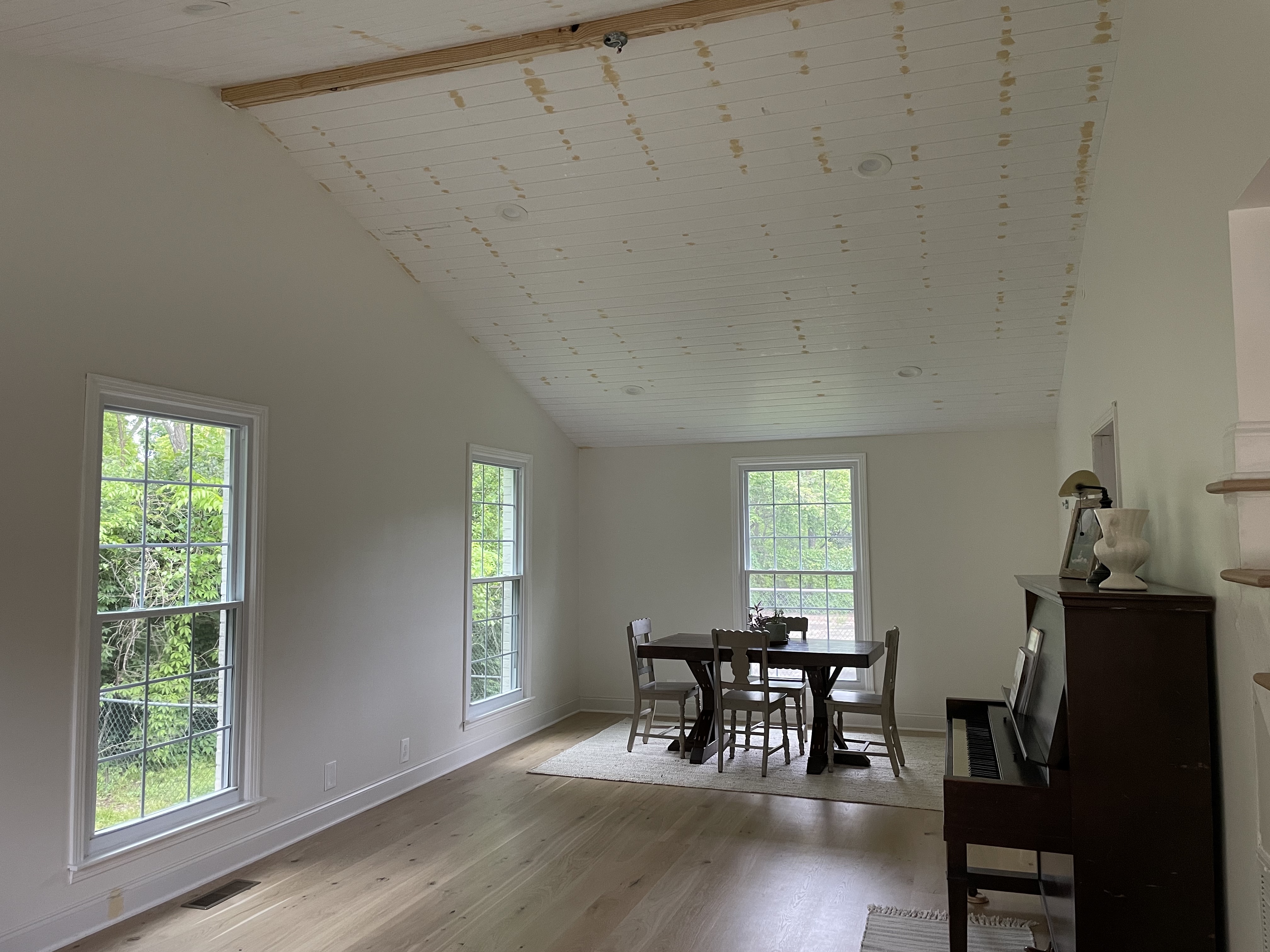 We are SO GLAD we made this decision. I was confident that I wanted to do this from the very first time I saw the house. I believe first impressions are powerful and the first impression walking through the front door of this house was not a selling point for the property. The two sides of the bottom level can both be raised to a center peak since the second story is just in the middle. We have raised the living room on the left and hope to raise the other on the right in the future, which is a larger space. The upstairs bedrooms could have been raised into the attic, bringing these ceilings to single slanted rooms, but we decided not to for the cost. Even though our roofs are not high peaks, the change was still really substantial. This was an addition which does not increase the value of the home in an appraisal. Beauty is in the eye of the beholder and while I think most buyers would appreciate this upgrade, it doesn’t do anything on paper.