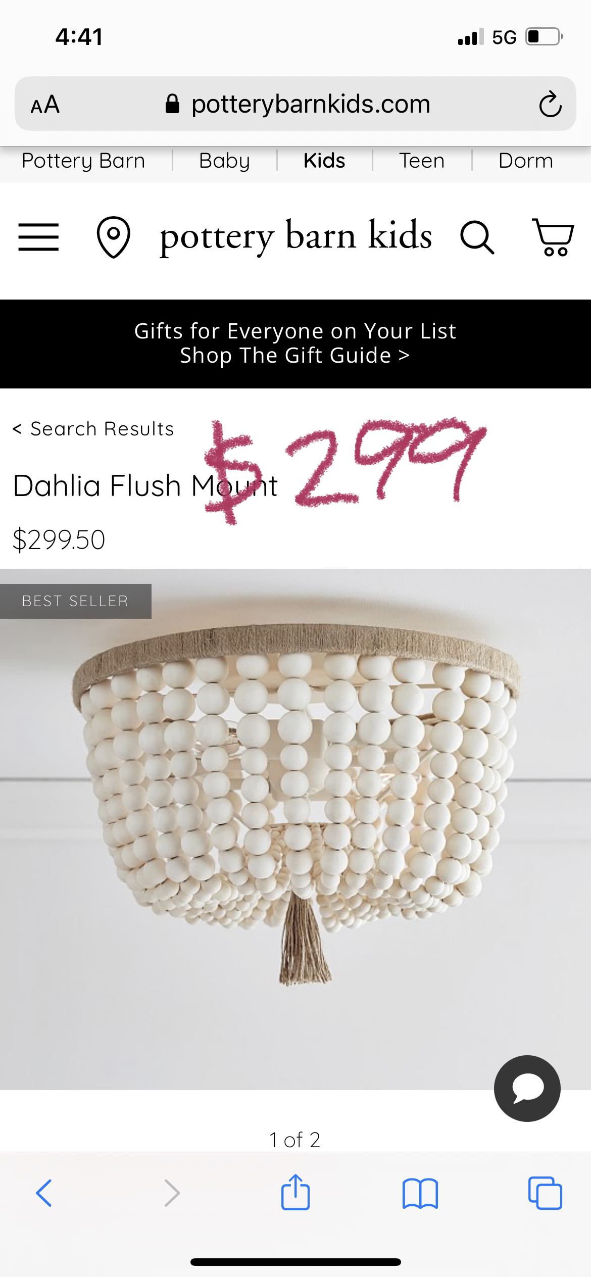 I found their center light fixture from Walmart of all places. I was in love with the pottery barn kids Dahlia light but found this winner instead!