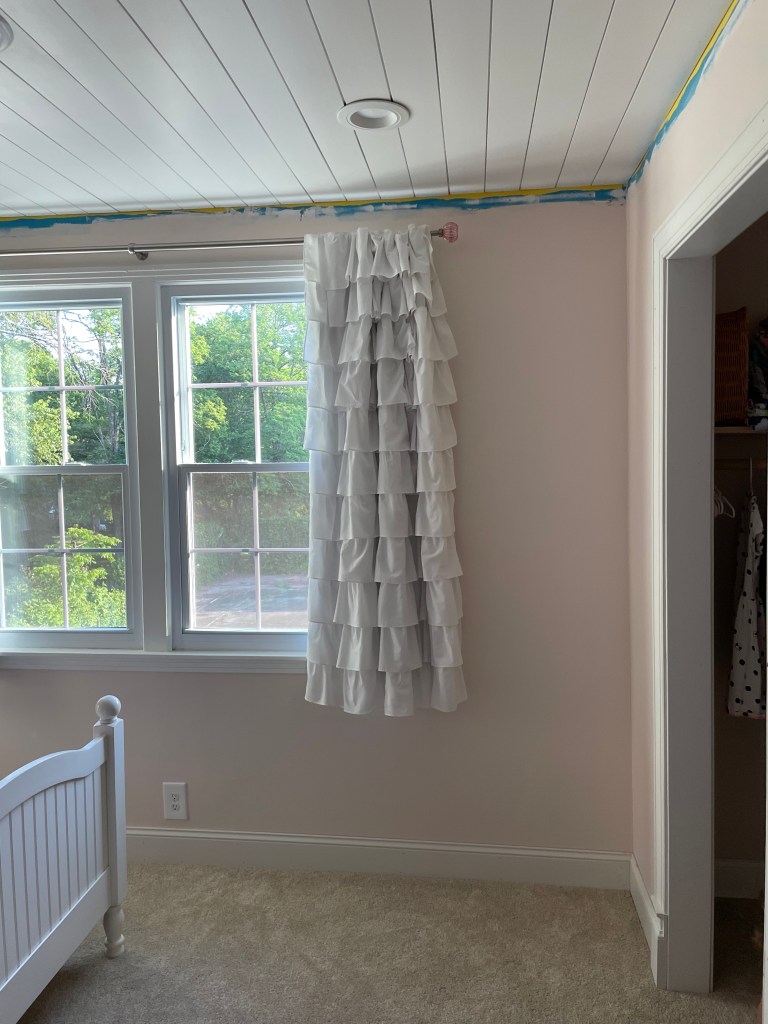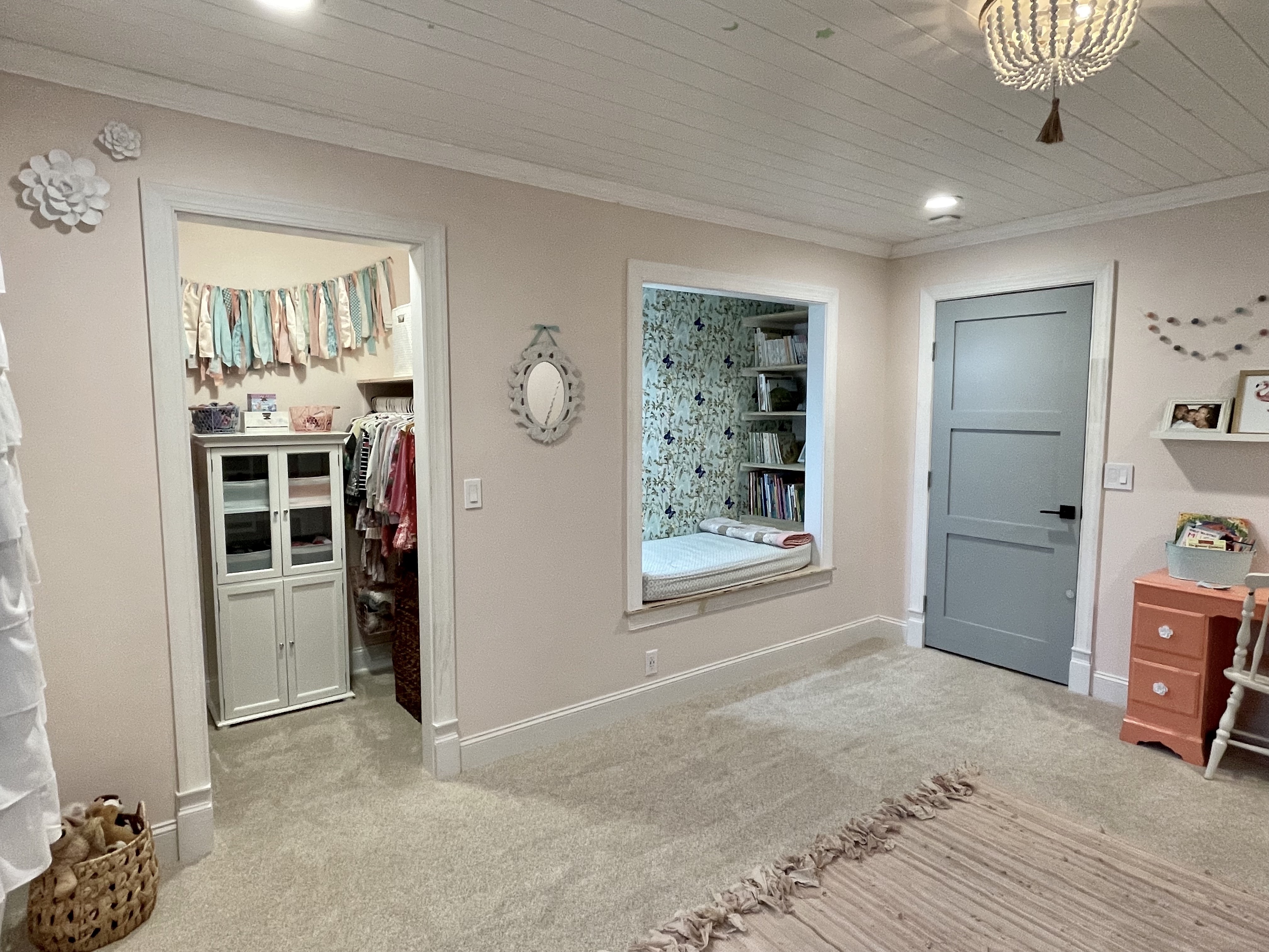 It’s no secret I love pink. And Isla shares the obsession so it was a fairly easy choice to go with pink walls. The color is Sherwin Williams “intimate pink” in eggshell and I adore it. It’s a very subtle dusty rose color. Recessed lighting was added and shiplap provided what I believe is the biggest transformation of all.