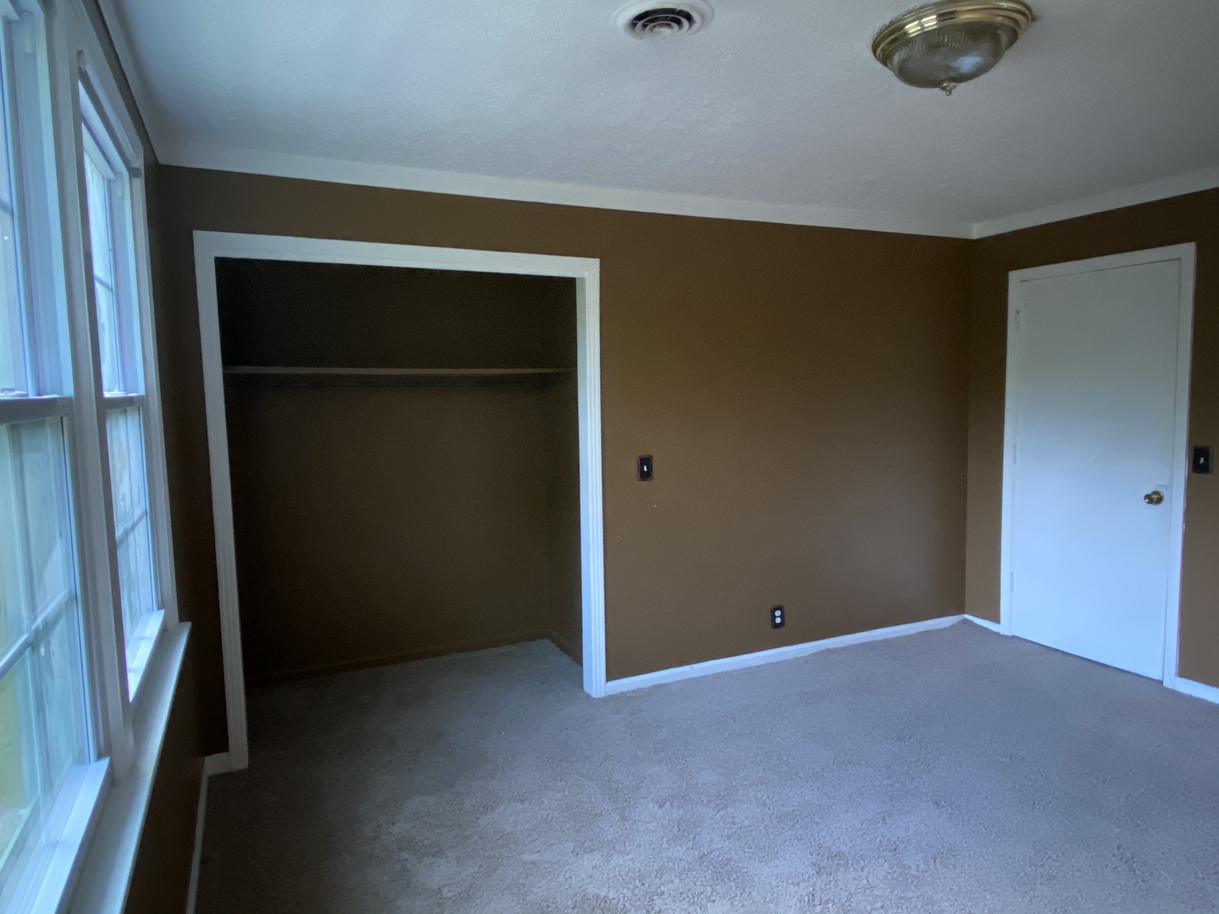 The changes to this room really involved that back wall. We redesigned the shallow closet from a wide bi-fold to a single door opening leading into a mini walk-in. Ronny put up rods and shelves on each side. We are leaving it doorless for now (less doors to slam on fingers and extra motivation for us to keep the space clean in there!)