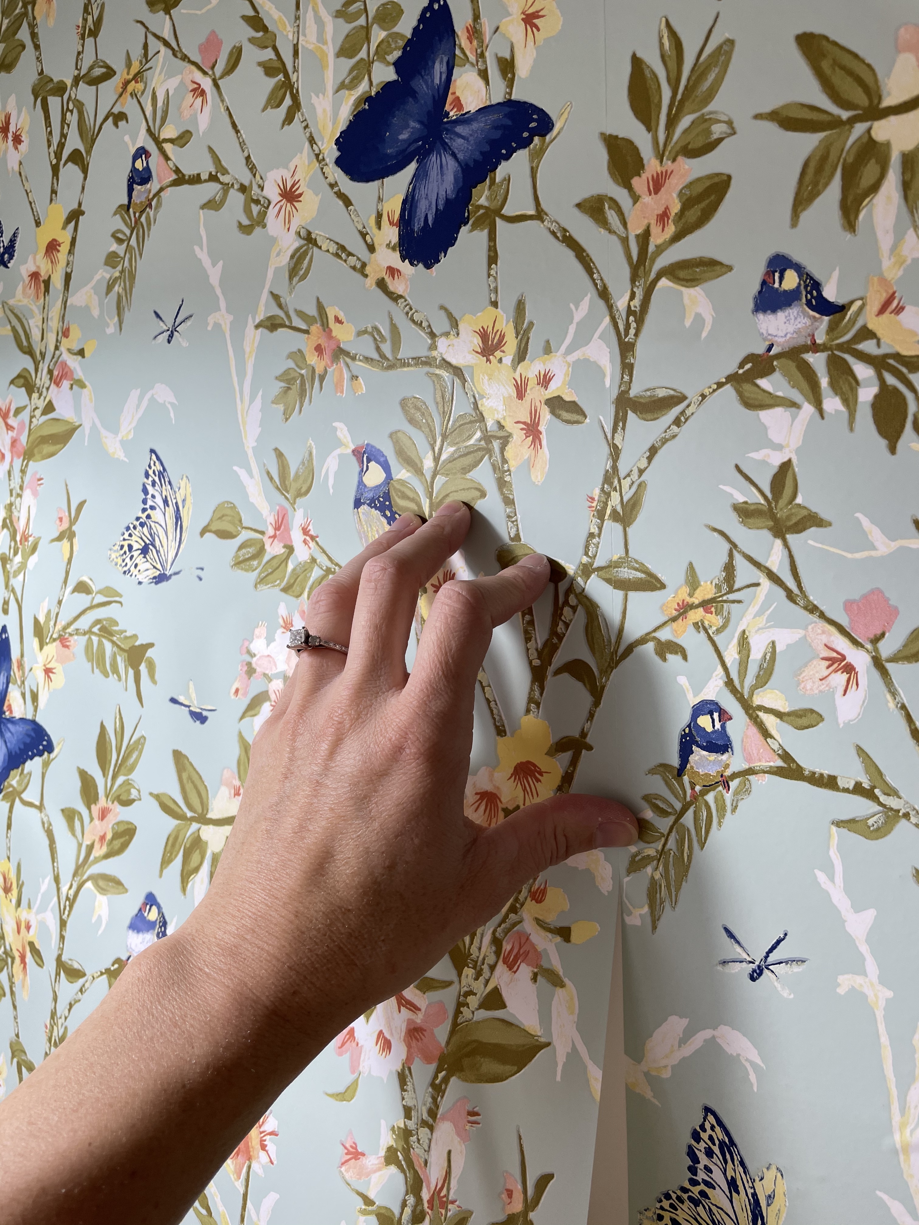 We stole space from two odd hall closets on the opposite side to create their nook. I’m so happy with using the space in this way. They spend a ton of time in there and the storage space under the bench is super ample. I still need to paint those plywood shelves white, add hinges to the bench doors and order a proper couch cushion to fit the space. The butterfly wall was my first wallpaper project. I ended up going with super cheap peel and stick from target. The girls loved the print and I wasn’t sure how long it would last anyways (kids picking at it, sharpies, snot…etc). This project took a good while to do correctly. If you’re stupid enough to do something like this, here’s my tips: 1. prime the walls well with primer 2. buy 25% extra because you’ll need to line up the print (a good bit is wasted) 3. use a sharp X-acto or pocket knife 4. use a squeegee and go SLOW for those air bubbles.